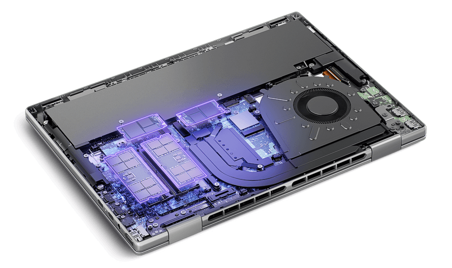 IdeaPad 5i 2-in-1 Gen 11 (Intel) Das IdeaPad 5i 2-in-1 der 11. Generation kombiniert Flexibilität mit moderner Rechenleistung. Ausgestattet mit Intel® Core™ Ultra Prozessoren und integrierter KI-Optimierung passt sich das System unterschiedlichen Arbeitsweisen an. Das robuste Gehäuse, welches nach MIL-STD-810H Standards getestet wurde, beherbergt ein wahlweise verfügbares OLED-Display und bietet eine ausgewogene Performance für produktive Aufgaben sowie multimediale Anwendungen, unterstützt durch eine Akkulaufzeit von 60Wh. Intel® Core™ Ultra Angetrieben durch Intel® Core™ Ultra Prozessoren bietet das System eine effiziente Verteilung der Rechenlast und integrierte Intel® Grafik für eine flüssige Darstellung. Copilot+ PC Dank integrierter NPU mit bis zu 47 TOPS unterstützt das System lokale KI-Verarbeitung für Copilot+ PC Funktionen und steigert Kommunikation sowie Produktivität durch Automatisierung. 35.56 cm (14") Display Das 14-Zoll Display im 16:10 Format bietet eine WUXGA-Auflösung und erreicht eine Helligkeit von bis zu 400 nits sowie eine 10-Finger-Touch-Steuerung. WQXGA OLED-Option Das optionale OLED-Panel bietet mit VESA Certified DisplayHDR™ True Black 500 und hoher Farbtreue eine präzise visuelle Darstellung für anspruchsvolle Inhalte. Präzise Farbwiedergabe Mit einer Farbraumabdeckung von bis zu 100% DCI-P3 beim OLED-Modell eignet sich das Gerät für die Bearbeitung von Bild- und Videomaterial. Lenovo Pen Gen 2 Der im Lieferumfang enthaltene Lenovo Pen Gen 2 (AES 3.0) ermöglicht präzise Skizzen und handschriftliche Eingaben direkt auf dem Bildschirm. Optimiertes Audio Die zwei 2-Watt-Lautsprecher sind mit Dolby® Audio™ zertifiziert und sorgen für eine klare Klangwiedergabe bei Videokonferenzen und Medieninhalten. 360° Drop Down Scharnier Das flexible 360°-Scharnier ermöglicht den Wechsel zwischen verschiedenen Modi und hebt die Tastatur im Laptop-Modus für eine ergonomische Eingabe leicht an. Kompaktes Gehäuse Mit einer Dicke ab 16,9 mm und einem Startgewicht von 1,49 kg in der Metall-Ausführung ist das Gerät für den mobilen Einsatz optimiert. Einfache Wartbarkeit Der Unterboden lässt sich recht einfach abnehmen und gibt Zugriff auf den Akku, die beiden RAM-Speicherplätze sowie den beiden M.2.-SSD Steckplätzen. Schnellladefunktion Der 60-Wh-Akku unterstützt Rapid Charge Boost, womit innerhalb von 15 Minuten Ladezeit eine Laufzeit von ca. 2 Stunden erreicht werden kann. KI-optimierte Mikrofone Zwei Mikrofone erfassen die Sprache präzise, während Al-Definition-Funktionen die Audioqualität bei virtuellen Meetings unterstützen. FHD IR Kamera Die Full-HD Infrarot-Kamera ermöglicht eine sichere Anmeldung per Gesichtserkennung und verfügt über einen physischen Privacy Shutter zum Schutz der Privatsphäre. Umfangreiche Konnektivität Das Gerät bietet zwei USB-C Anschlüsse (mit DisplayPort und Power Delivery), zwei USB-A Ports, HDMI 1.4b sowie einen MicroSD-Kartenleser für eine vielseitige Peripherieanbindung. *1 modellabhängiges Feature - nähere Informationen bitte dem Datenblatt entnehmen. | *2 Alle Angaben zur Akkulaufzeit sind Näherungswerte und basieren auf Tests unter spezifischen Bedingungen (MobileMark 2030 / Video Playback). Die tatsächliche Laufzeit variiert je nach Konfiguration, Nutzung und Einstellungen. | *3 Optional erhältliches Zubehör | *4 Maximale Aufrüstoption (siehe Konfigurator) | *5 Verfügbarkeit kann regional variieren