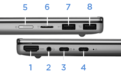 Unterstützt bis zu 4 unabhängige Displays (integriertes Display und 3 externe Monitore über HDMI® und USB-C) |