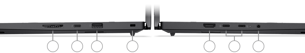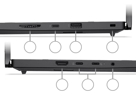 2x Thunderbolt™ 5 (80GBit/s, DisplayPort™ 2.1, Power Delivery 3.1), 1x Thunderbolt™ 4 (40GBit/s, DisplayPort™ 2.1, Power Delivery 3.0 bis 135W), Ein Anschluss ist belegt, wenn Gerät über Type-C Netzteil geladen wird! |