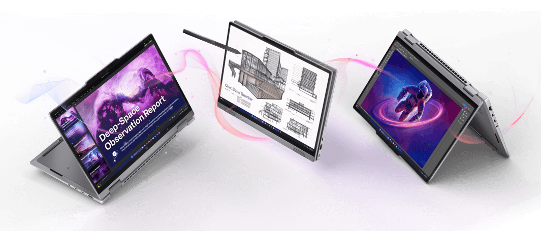 X1 2in1 G11 Intel® Core™ Ultra Gen3 Starke Intel® Core™ Ultra-Prozessoren der dritten Generation mit integriertem KI-Motor (NPU) bieten portable Spitzenleistung und ermöglichen eine beeindruckende Kombination aus Performance und Effizienz. Copilot+ PC Der Intel® Core™ Ultra X AI-Prozessor mit bis zu 50 TOPS*1 ermöglicht KI-gestützte Funktionen, produktivere Arbeitsabläufe, smarte Automatisierung und personalisierte Unterstützung für Effizienz und Kreativität. 16:10-Touch-Display Das ThinkPad X1 2-in-1 bietet Displayoptionen mit Auflösungen bis zu 2.8K, einem Screen-to-Body-Verhältnis von 87,8 % und einer brillanten Farbdarstellung. Optionales OLED-Display Das 14-Zoll-OLED-Display mit einer variablen Bildwiederholrate von bis zu 120 Hz, 100% DCI-P3-Farbraum und DisplayHDR™ True Black 500-Unterstützung sorgt für fotorealistische Farben und tiefstes Schwarz. Aufladbarer Eingabestift Der überarbeitete Lenovo Yoga Pen bietet präzises Schreiben und Zeichnen und haftet magnetisch an der Seite des Displays. Er ist über USB-C aufladbar und immer griffbereit. 360° Convertible Das flexible 360-Grad-Scharnier ermöglicht müheloses Umschalten zwischen Laptop-, Tablet-, Tent- und Präsentationsmodus. Nachhaltig gefertigt Das ThinkPad X1 2-in-1 besteht aus recyceltem Aluminium und Plastik, kombiniert mit Hydro-Aluminium, und setzt neue Maßstäbe für nachhaltige Produktgestaltung. Aluminium Gehäuse Dank der MIL-STD-810H-Zertifizierung hält das Gerät auch extremen Anforderungen stand und gewährleistet Langlebigkeit und Zuverlässigkeit. Kompakt & leicht Mit einer Bauhöhe von nur 15,49 mm und einem Gewicht ab 1,29 kg (OLED-Version) ist das X1 2-in-1 ein perfekter Begleiter für unterwegs. Tastatur mit Beleuchtung Die beleuchtete ThinkPad-Tastatur mit TrackPoint und großzügigem 120-mm-Touch- oder Forcepad sorgt für angenehmes und effizientes Tippen. Ultranav Zusätzlich zum Touchpad hat die Tastatur einen integriertem TrackPoint. Dadurch lässt sich der Mauszeiger auch ohne externe Maus zielgenau steuern. Dolby Atmos Audio™ Das X1 2-in-1 bietet erstklassige Lautsprecher mit Dolby® Atmos®, die ein immersives Klangerlebnis garantieren. Lange Akkulaufzeit Der 57-Wh-Akku in Kombination mit den AI-Engines des Intel® Core™ Ultra-Prozessors sorgt für optimierte Effizienz und eine lange Laufzeit. Dolby® Voice Die integrierten Mikrofone mit Dolby® Voice-Technologie sorgen für glasklare Audioqualität bei Meetings und Anrufen. Optional 8MP-UHD IR-Webcam Das Lenovo ThinkPad X1 2-in-1 bietet eine FHD- oder 8MP-IR-Kamera*1, beide mit Windows Hello und Privacy Shutter. Umfassende Sicherheitsfeatures Lenovo ThinkShield bietet prädiktive Sicherheitslösungen, inklusive Schutz vor Betrug und Cyber-Resilienz, für höchste Sicherheit. Viele Garantieoptionen Das Think Pad X1 2in1 bietet neben einer langfristigen Garantie auch viele verschiedene Service-Optionen für jeden Business-Case. Thunderbolt™ 4-Anschluss Zwei Thunderbolt™ 4-Anschlüsse ermöglichen ultraschnelle Datenübertragungen und vielseitige Konnektivität. *1 modellabhängiges Feature - nähere Informationen bitte dem Datenblatt entnehmen. | *2 Herstellerangabe, gemessen mit Mobile Mark 25 - Die angegebene Akkulaufzeit stellt die geschätzte Maximaldauer dar. Die tatsächliche Batterie-Lebensdauer basiert auf mehreren Faktoren, darunter die Hardware-Ausstattung, die Helligkeit des Bildschirms, der Art und Anzahl der aktiven Anwendungen, den Energiespareinstellungen, dem Alter und dem Zustand der Batterie und anderen Einstellungen des Anwenders. | *3 Optionales Zubehör, das separat erworben werden muss. | *4 Maximale Aufrüstoption (siehe Konfigurator)