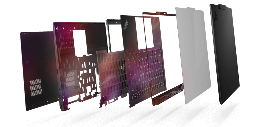 | Material | Displaydeckel (A-Cover): Kohlenstoff-/Glasfaserverstärkter Kunststoff (PC/CF/GF), Handballenauflage (C-Cover): Magnesium-Legierung, Unterseite (D-Cover): Magnesium-Legierung | |