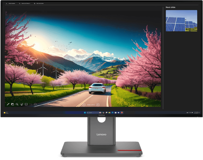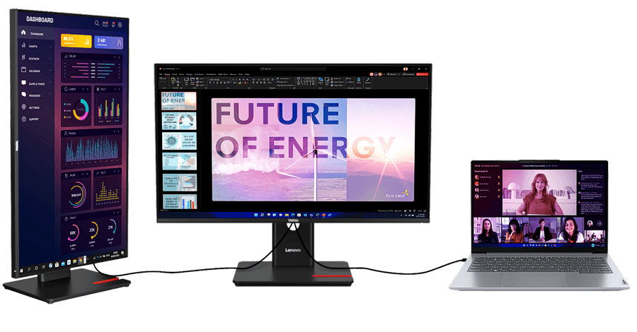 P32UD-40 31.5" 80,01 cm UHD 3840 x 2160 120Hz Variable Rate IPS Präzises Panel mit Docking Thunderbolt™ 4 Docking eKVM Effiziente Steuerung Der ThinkVision P32UD-40 bietet mit seinem 31,5-Zoll UHD-Display eine großzügige Arbeitsfläche für professionelle Anforderungen. Das In-Plane Switching Panel gewährleistet eine konsistente Farbdarstellung aus weiten Betrachtungswinkeln von 178°. Dank der integrierten Thunderbolt™ 4 Dockingstation mit bis zu 140 W Power Delivery (PD 3.1) lassen sich kompatible Geräte effizient laden, während die variable Bildwiederholrate von bis zu 120 Hz für eine flüssige Darstellung sorgt. Administrative Aufgaben werden durch den Lenovo Display Fleet Manager (LDFM) für eine zentrale Bestandsverwaltung und Firmware-Updates erleichtert. Präzise Farbwiedergabe Das Display bietet eine Abdeckung von 99 % sRGB, 99 % BT.709 und 98 % DCI-P3 mit einer Werkskalibrierung von Avg. Delta E<2. Das IPS-Panel liefert einen typischen Kontrast von 1500:1 für eine klare Trennung von hellen und dunklen Bildbereichen. HDR10 und 10-Bit Farbtiefe Durch die Unterstützung von HDR10 und eine Farbtiefe von 1,07 Milliarden Farben (10-bit 8+FRC) werden Nuancen fein abgestuft dargestellt. Die typische Helligkeit von 350 cd/m² sorgt dabei für eine gut sichtbare Anzeige. 4K im Nahtloses Design Das 4-seitig ultra-schmale Rahmendesign ermöglicht eine nahezu randlose Optik. Mit einer UHD-Auflösung von 3840 x 2160 Pixeln auf 31,5 Zoll ergibt sich eine scharfe Pixeldichte von 140 DPI. Adaptive 120 Hz Bildwiederholrate Die variable Bildwiederholrate passt sich dynamisch zwischen 24 Hz und 120 Hz an den Bildinhalt an. Dies ermöglicht flüssige Bewegungen bei Videoinhalten und eine gesteigerte Energieeffizienz durch einen integrierten AI Power Saving Mode. Umfassende Ergonomie Der Monitor lässt sich in der Höhe um 155 mm verstellen, neigen, schwenken und dank Pivot-Funktion um 90° drehen. Natural Low Blue Light und die Eyesafe 2.0 Zertifizierung schonen die Augen während langer Arbeitstage. Modulares Zubehör-System Dieser Monitor bietet modularen Support für optionale VoiP-Erweiterungen wie die Lenovo MC60 Webcam oder die Lenovo MS30 Soundbar. Thunderbolt™ 4 Ein-Kabel-Lösung Über Thunderbolt™ 4 werden Daten (40 Gbps), Videosignale und Ladeströme bis 140 W übertragen. Zusätzlich ist ein schneller Ethernet-Port (RJ45) mit 2.5G integriert, um eine stabile Netzwerkverbindung sicherzustellen. Konnektivität und Daisy-Chain Dank Thunderbolt™ Out und DP-Out können Monitore via Daisy-Chain für effizientes Multitasking verbunden werden. Mehrere USB-A (5Gbps) und ein USB-C Downstream-Port dienen als Hub für Peripheriegeräte. Integrierter eKVM-Switch Mit der eKVM-Funktion lassen sich zwei angeschlossene PC-Systeme komfortabel mit nur einem Satz aus Tastatur und Maus steuern, was den Wechsel zwischen verschiedenen Workstations vereinfacht. PiP- und PbP-Funktionen Die Unterstützung von Picture-in-Picture (PiP) und Picture-by-Picture (PbP) ermöglicht die gleichzeitige Anzeige von Inhalten aus zwei verschiedenen Videoquellen für ein optimiertes Workflow-Management. VESA-Mount Der VESA Mount 100x100mm erlaubt die flexible Montage an Schwenkarmen oder Wandhalterungen. Dies schafft Platz auf dem Schreibtisch und ermöglicht eine ergonomische Ausrichtung für maximalen Komfort. Lenovo Display Fleet Manager Der LDFM ermöglicht IT-Managern eine zentrale Steuerung aller Monitore. Das Tool erlaubt effiziente Firmware-Upgrades, die Verwaltung von Geräteeinstellungen sowie ein optimiertes Asset-Management.